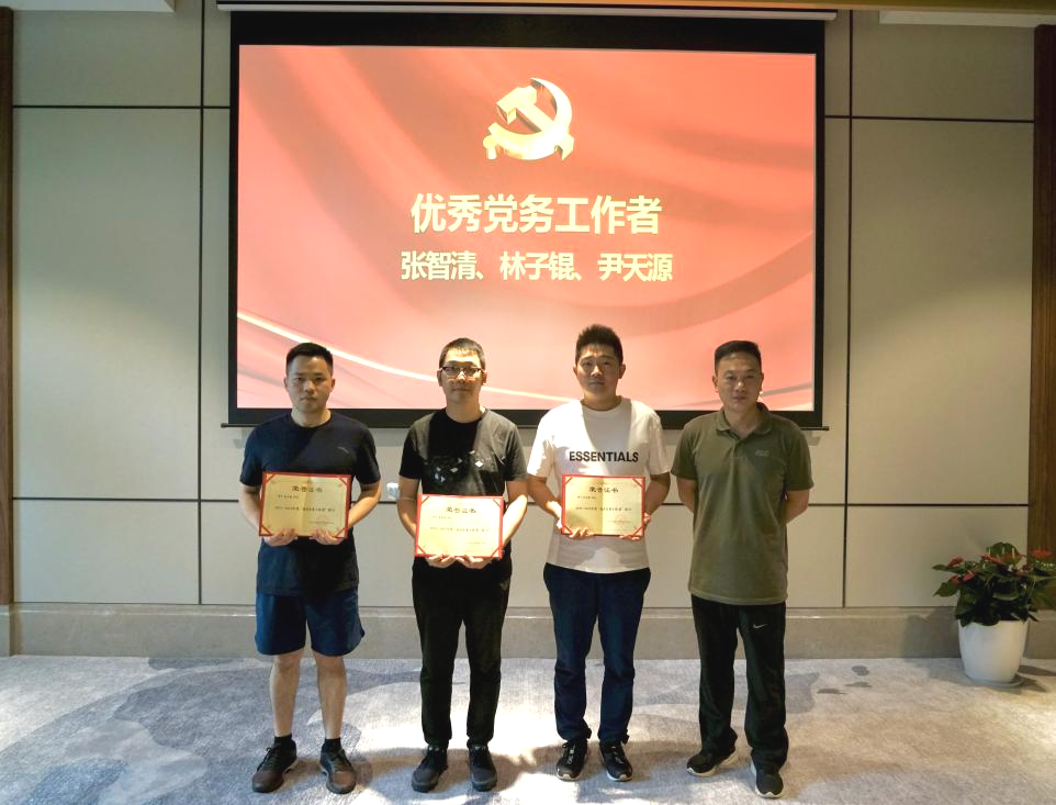 表彰會上,全體黨員在黨委書記、董事長張波同志的帶領下重溫入黨誓詞,重憶入黨初心。總經理彭扶民同志宣讀了《關于表揚2021—2022年度優秀共產黨員、優秀黨務工作者的通報》。張波同志、彭扶民同志分別為“優秀黨務工作者”“優秀共產黨員”頒獎。
