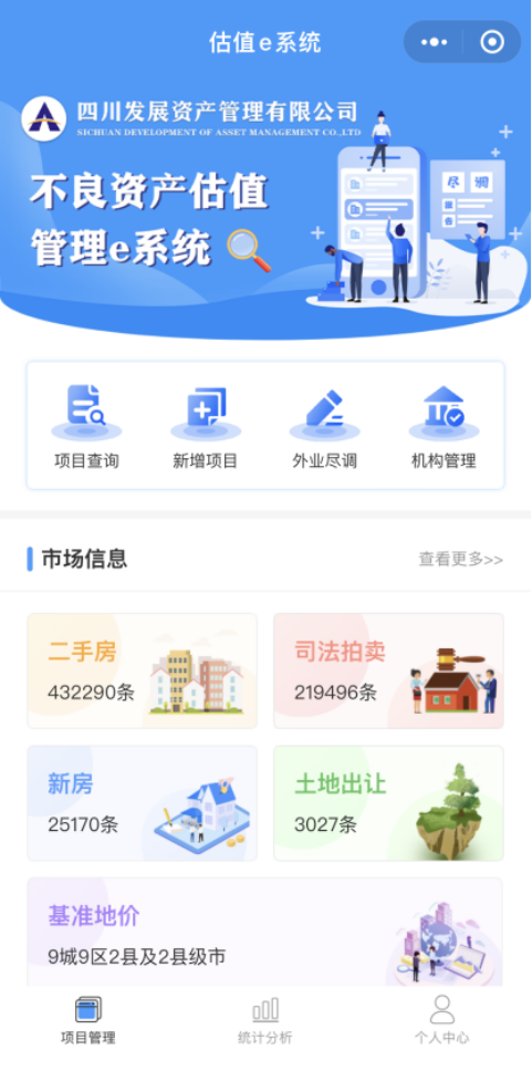 該系統以資產估值作為核心版塊,基于數十萬條二手房、司法拍賣、新房、土地出讓數據及基準地價信息,通過手機端(微信小程序:估值e系統)和PC端(www.scdamc-gz.com)的實時互聯,將項目前期盡調成果與后端估值有機結合,充分展示資產的實物、權益及瑕疵、風險、變現能力等,初步解決資產現時估值和后期價值提升問題。根據公司全面風險管理要求和系統建設規劃,不良估值管理e系統將根據業務和管理需求分期開發、逐步完善。上線試運行期將持續2個月,于2023年2月末完成上線調試,正式版將在完成應用及優化調整后,于3月正式上線發布。